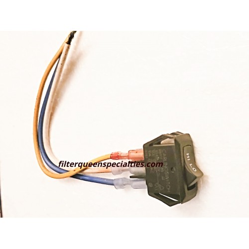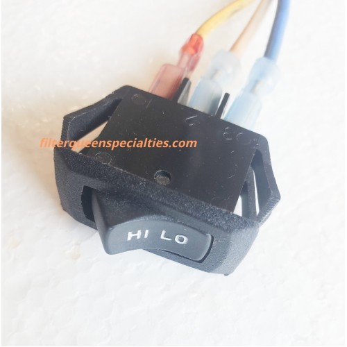 Filter Queen Hi/Lo switch. New and genuine. This switch fits only the model 99A in the Filter Queen line. Switch comes complete with pigtails.